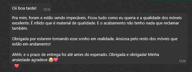 Mais do que móveis, criamos histórias. E é isso que nos move: transformar ideias em projetos, e projetos em emoção. Porque para nós, cada móvel é mais do que um produto. É parte da vida de alguém.